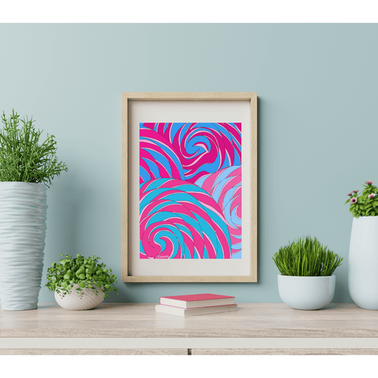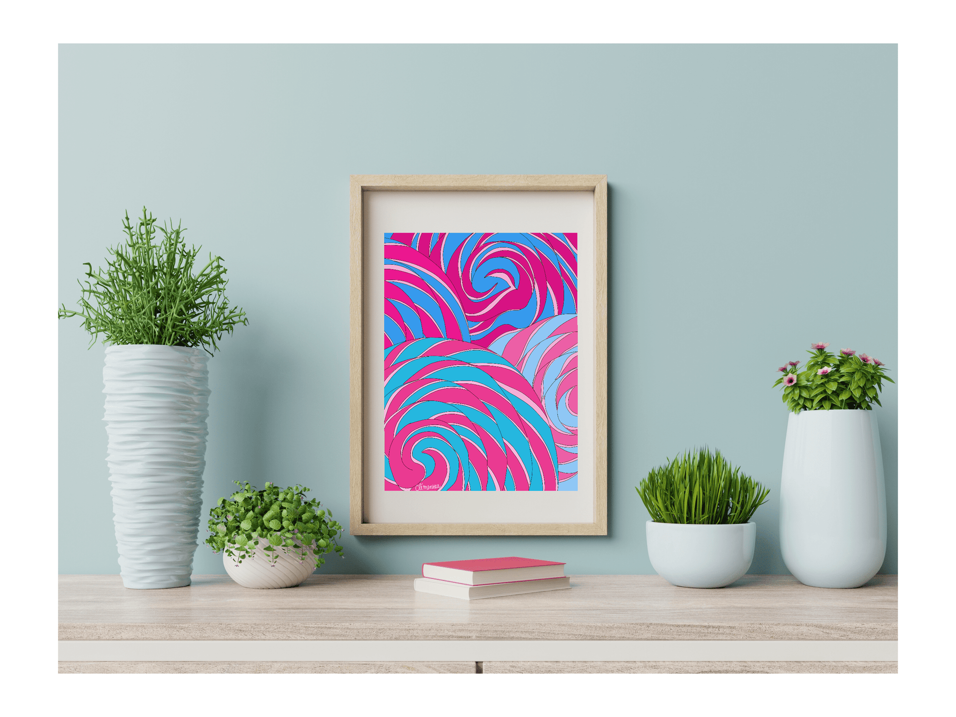 Affiche de 30x40 cm illustrant des lollipop, dans les tons de rose et bleu