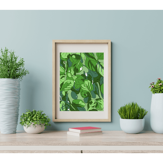 Affiche de 30x40 cm illustrant des feuilles d'épinard, dans les tons de vert