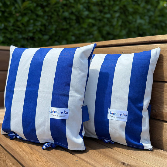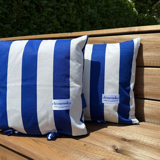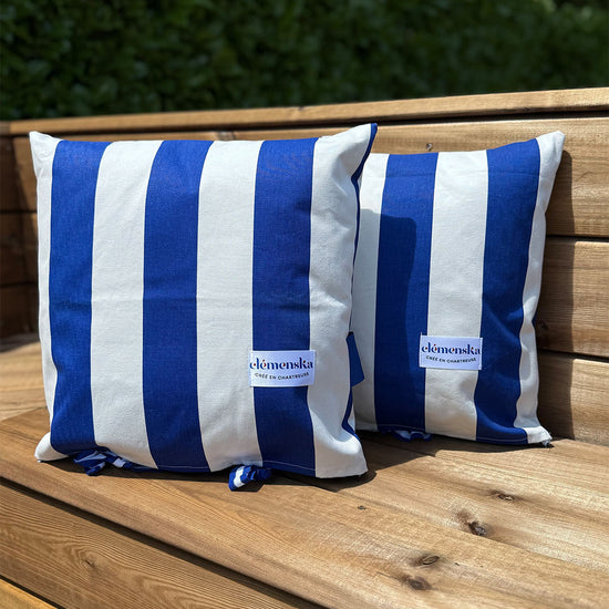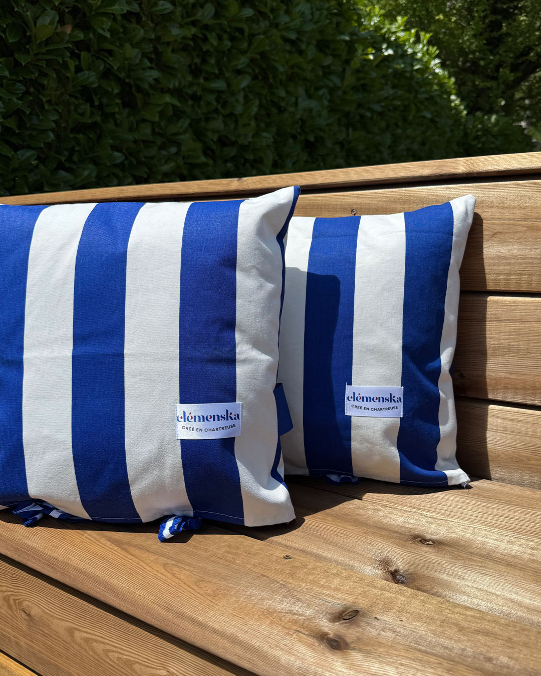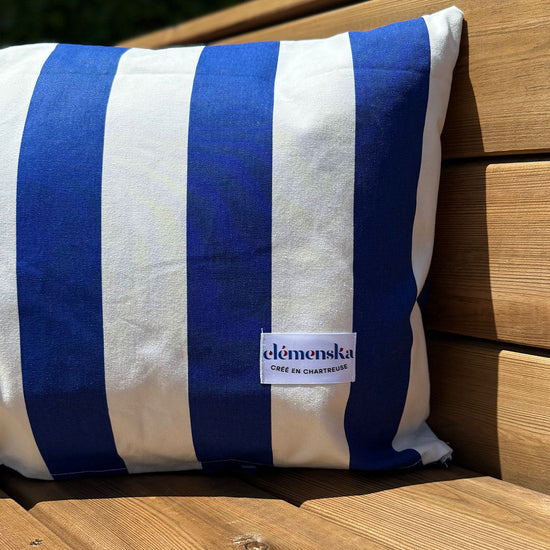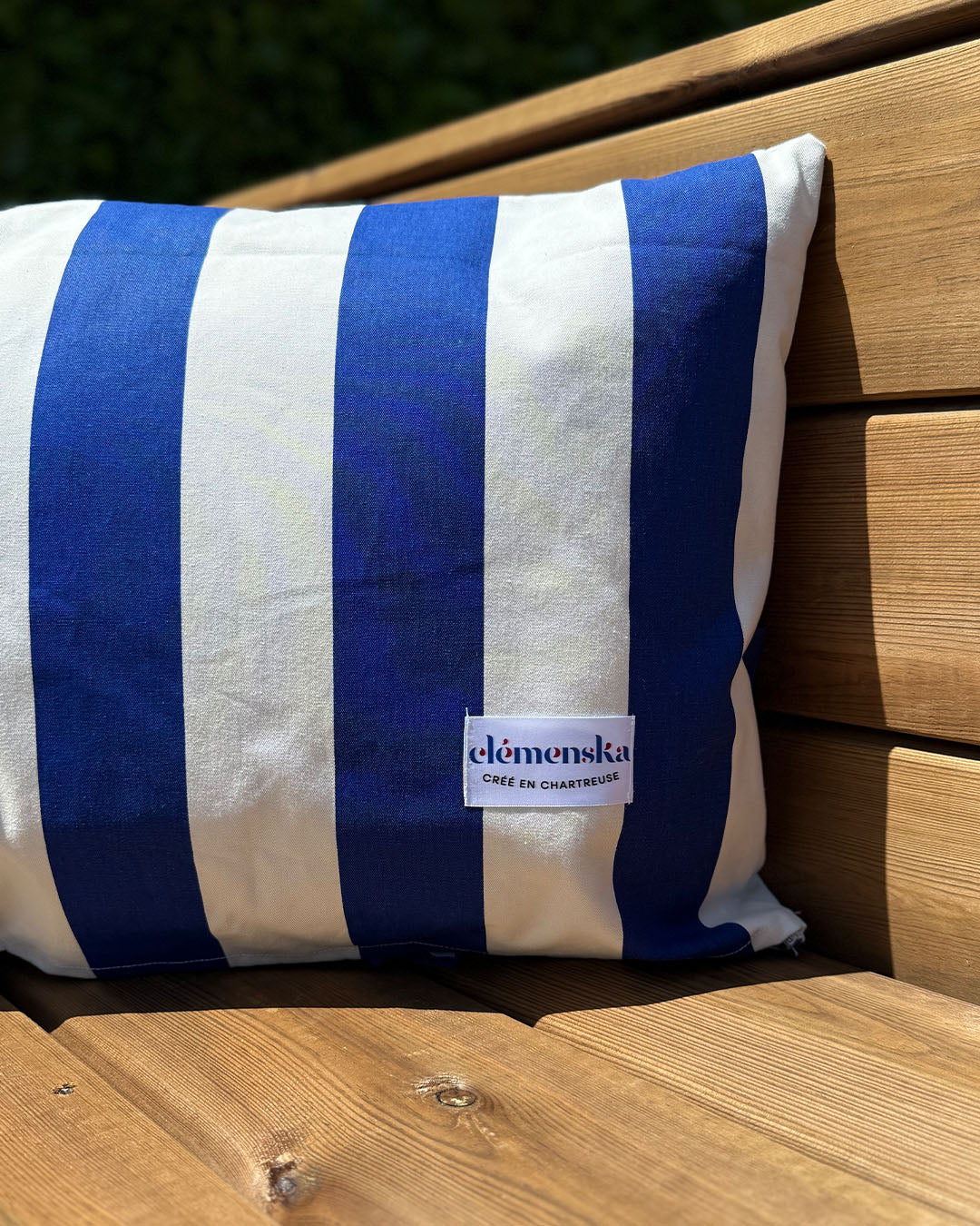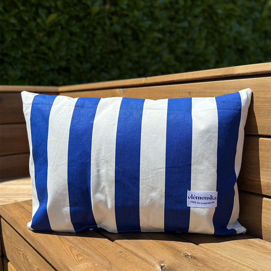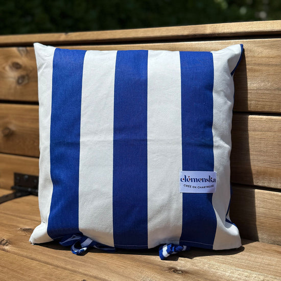 Le coussin est vendu SANS la housse en TNT. Magnifique coussin à rayures bleu et blanche.