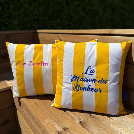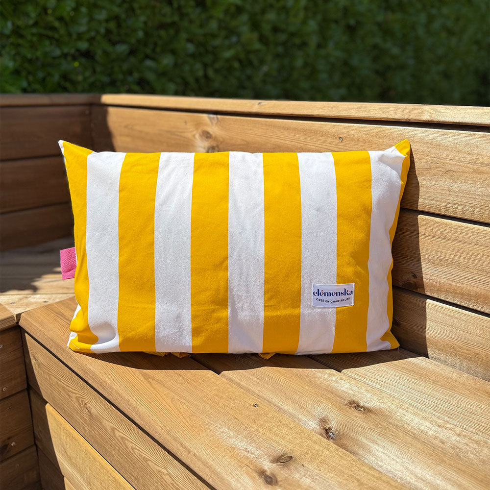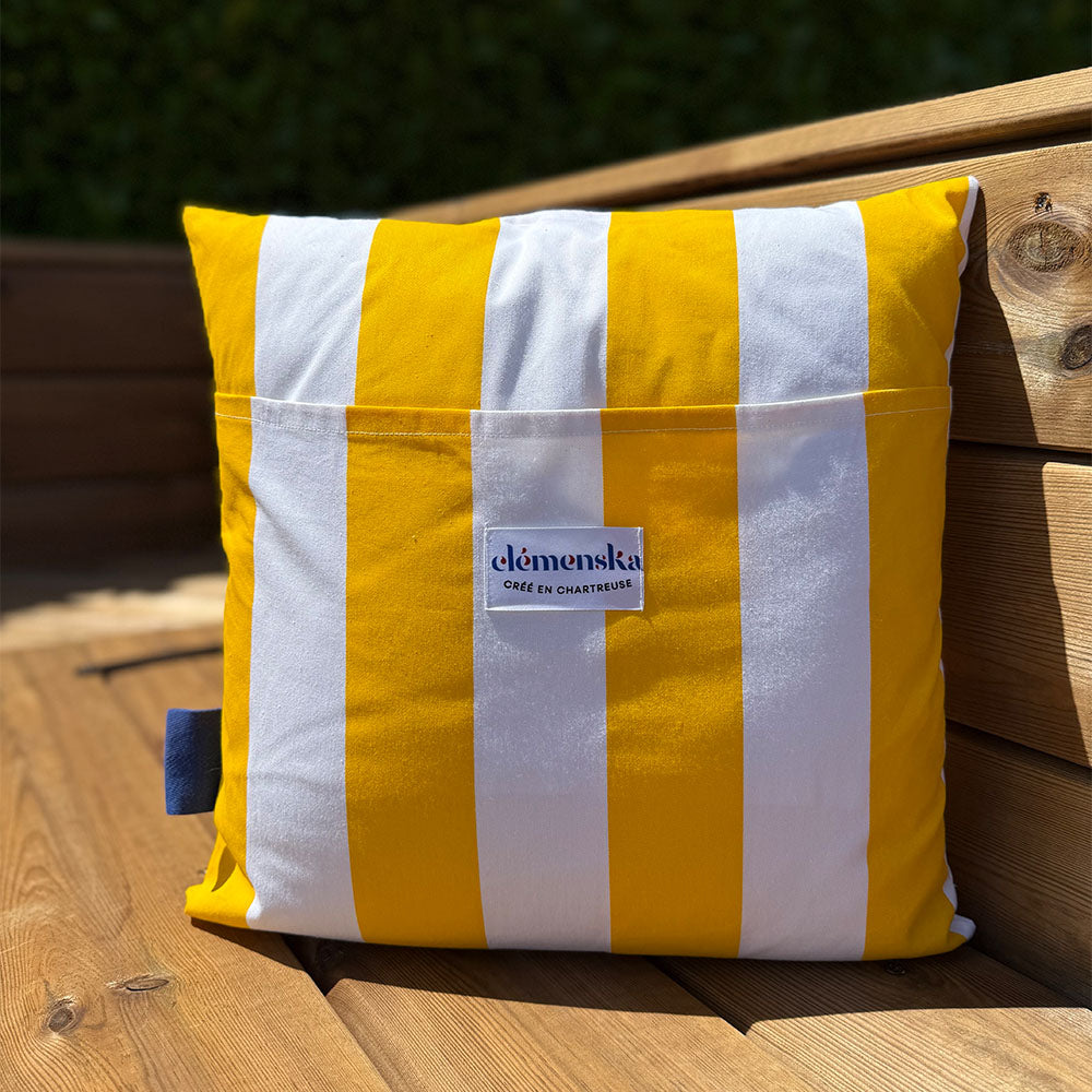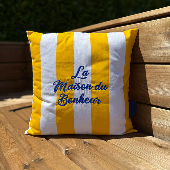 Made in France, vintage, recyclage de tissus, déhoussable, Fabrication française, fait main, coussin intérieur, coussin extérieur, fabriqué en France, fête des mères, home, maison, bonheur, coussin, jaune, rose, bleu, durable
