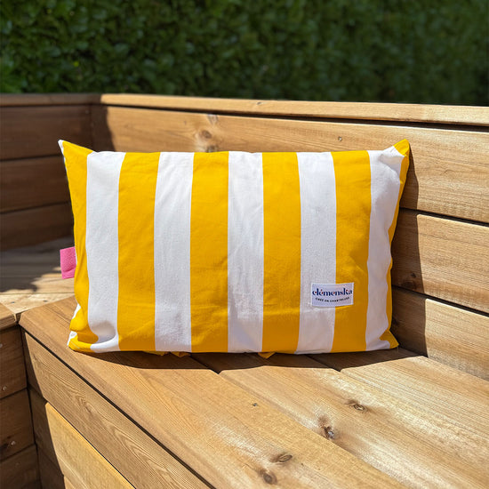 Le coussin est vendu SANS la housse en TNT. Magnifique coussin à rayures bleu et blanche.