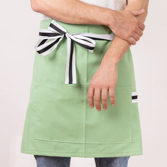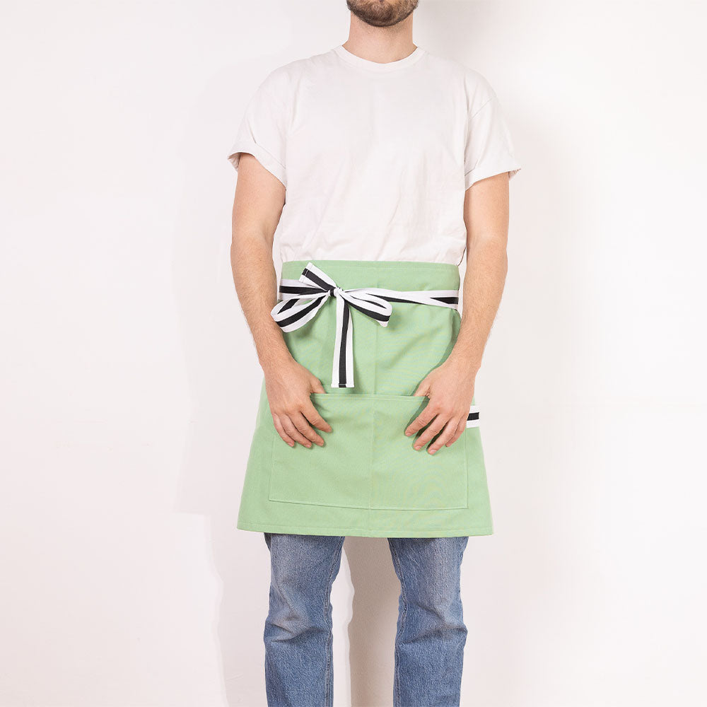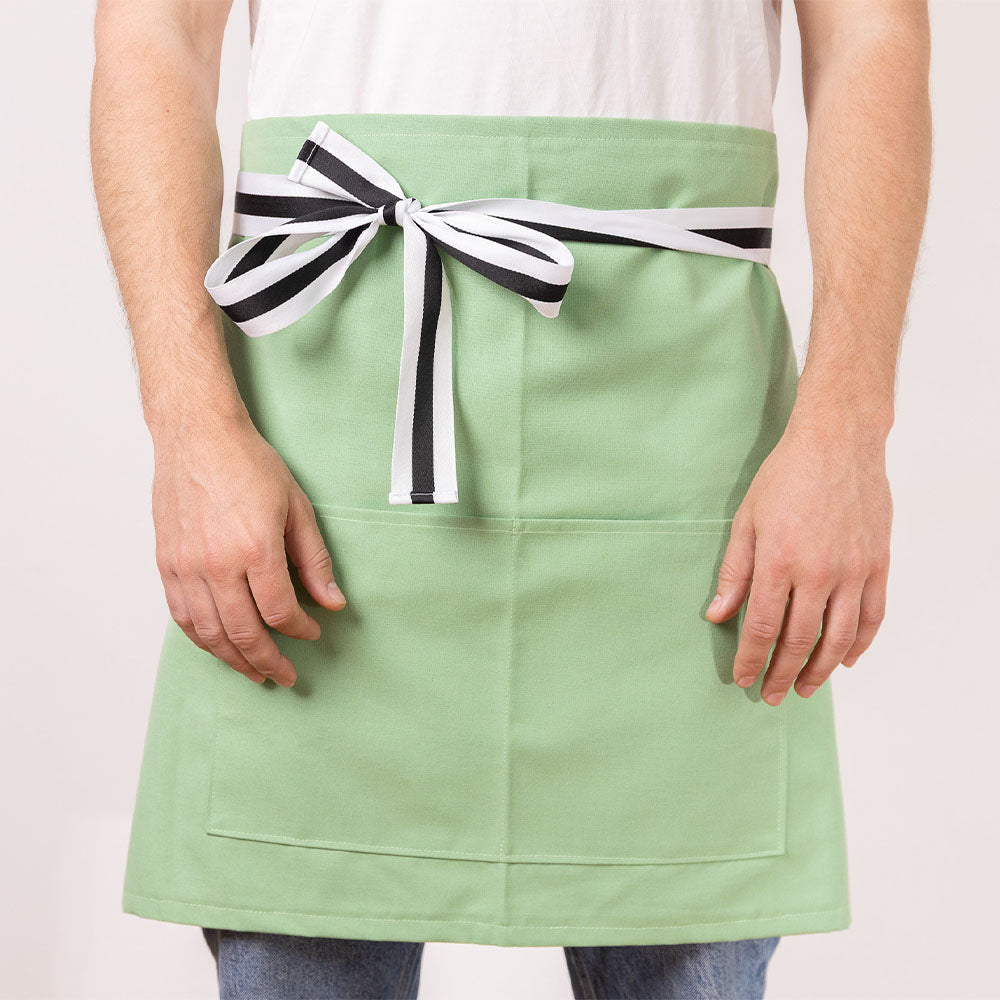 Tablier crée avec amour en Chartreuse, idéal pour les professionnels de la restauration et métiers de bouche . Avec sa toile 50% Coton et 50% polyester, ses rubans en 100% polyester uni, il est d'une longueur de 50 cm.