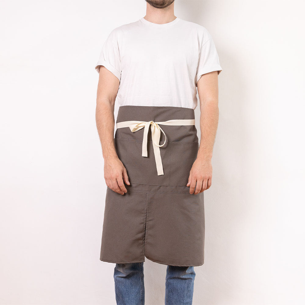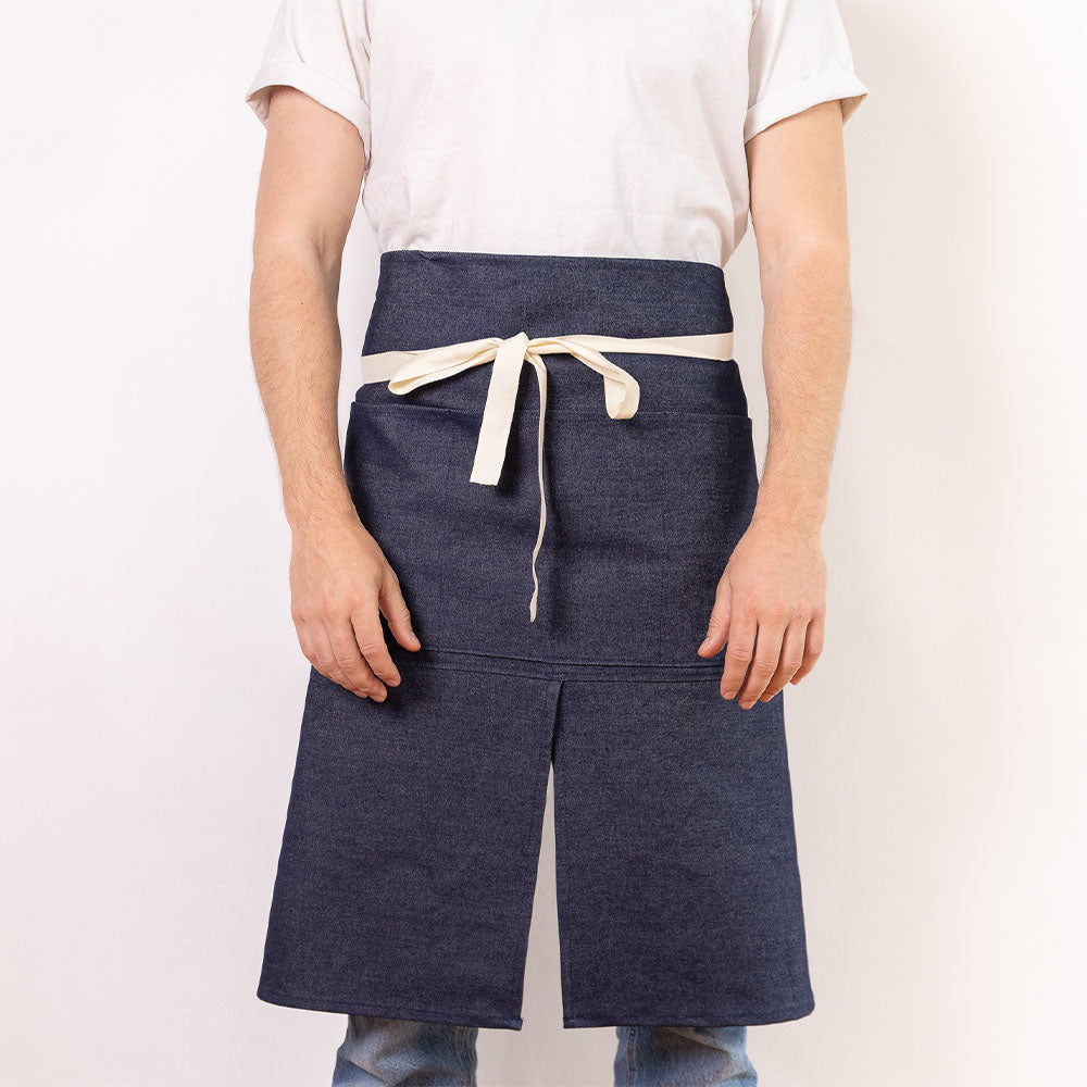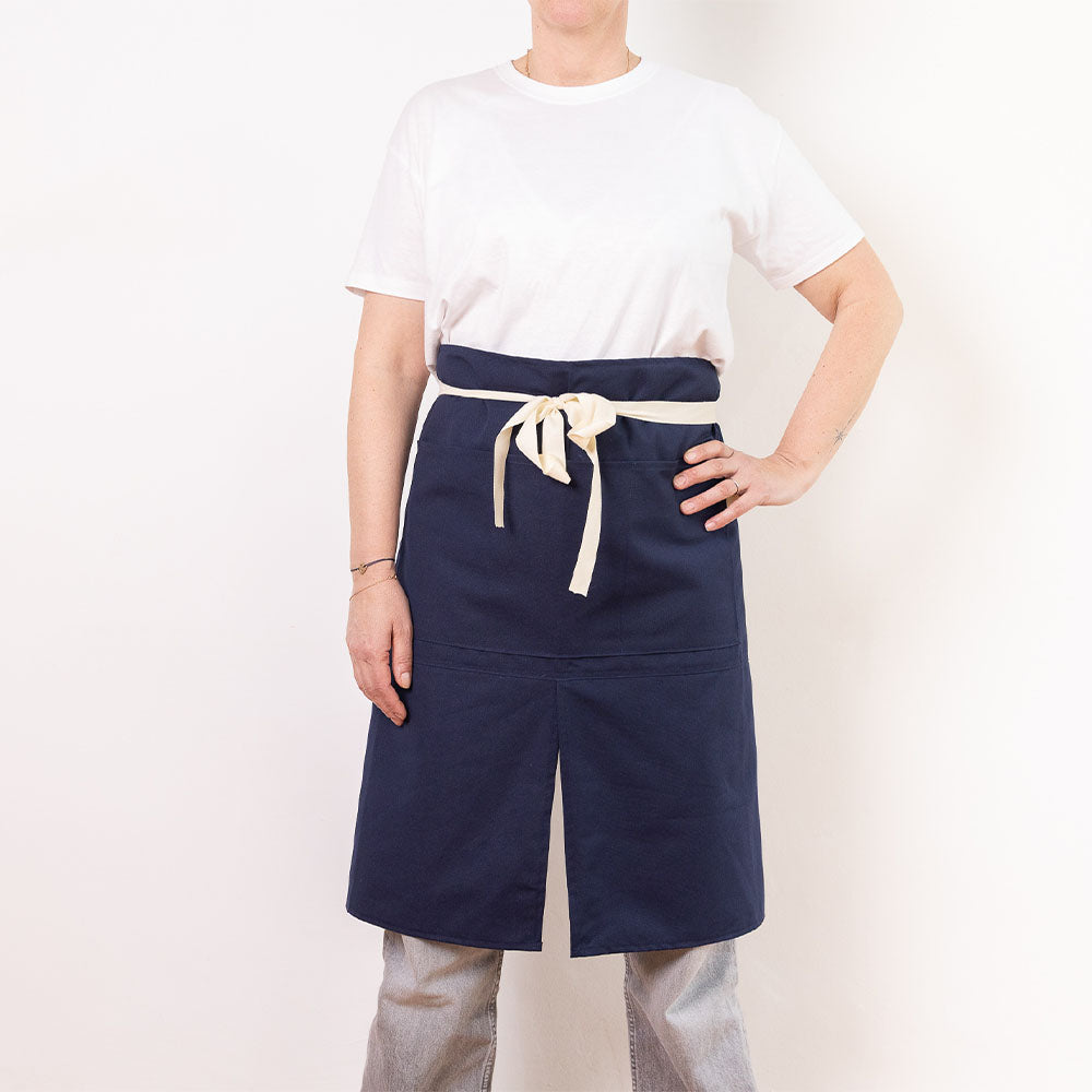Ce tablier est plus long et possède une ouverture sur le centre du tablier
