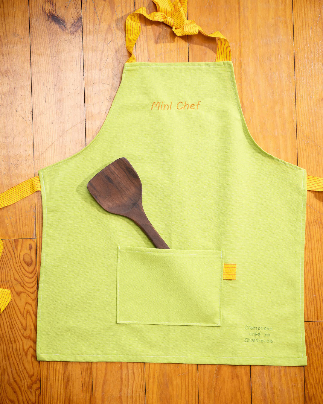 Les tabliers Clémenska Créations sont réalisés par Clémence, dans son atelier sur les hauteurs de Grenoble.
